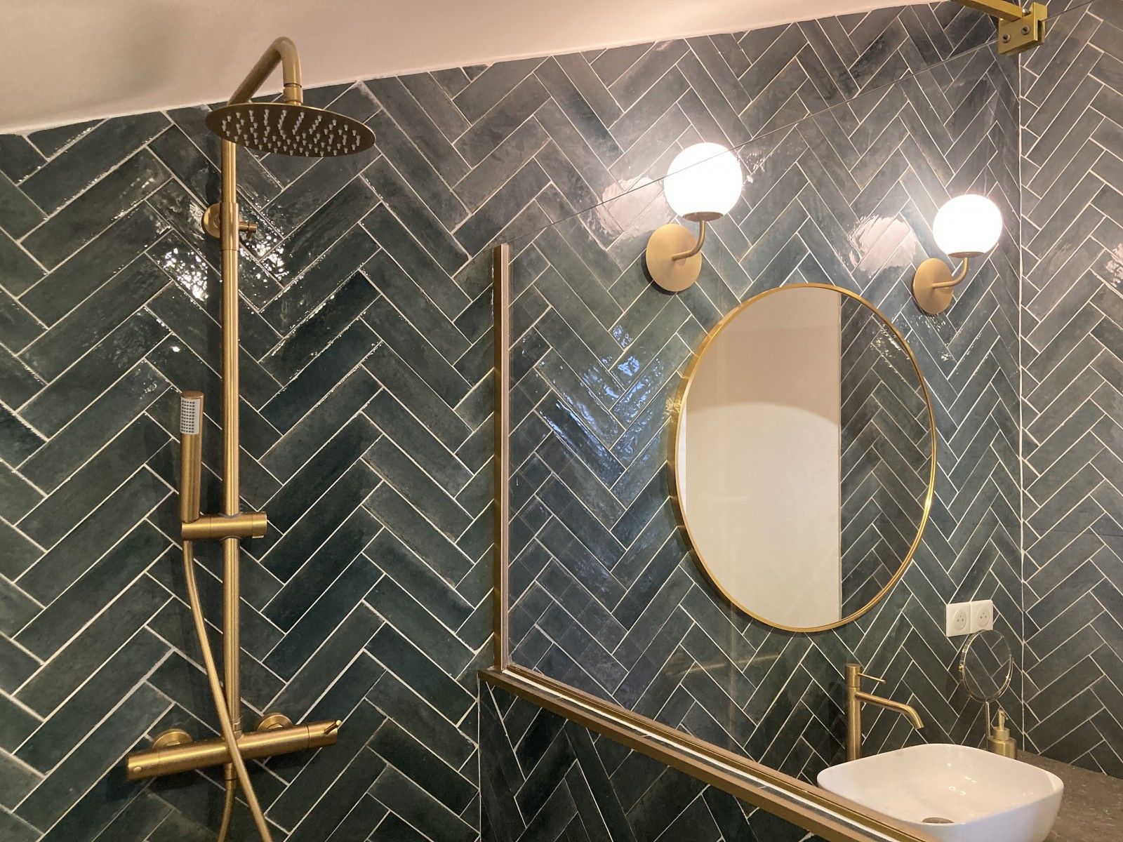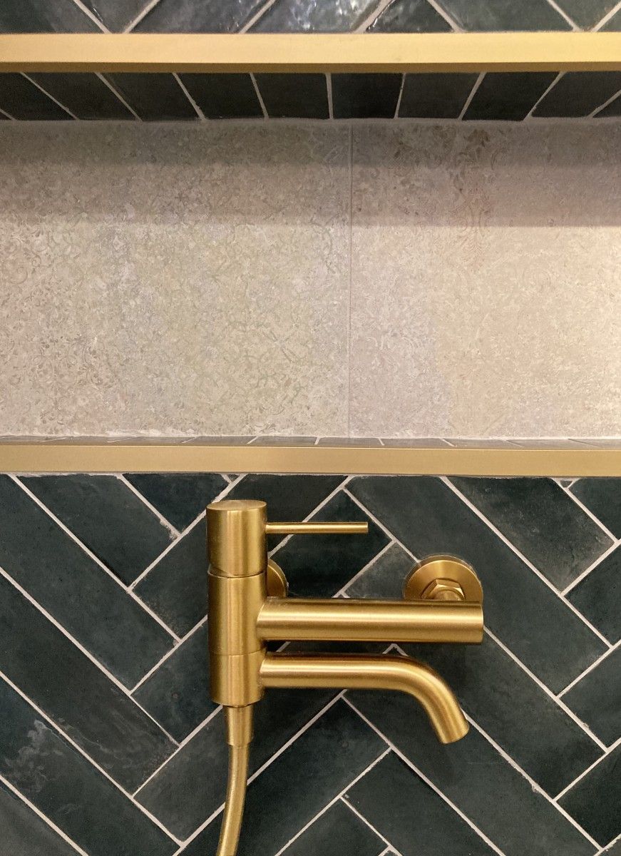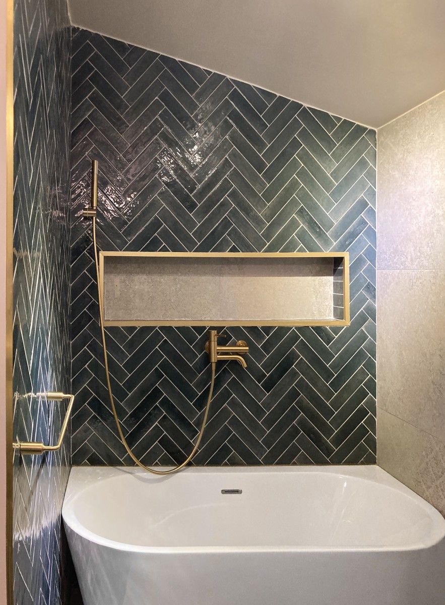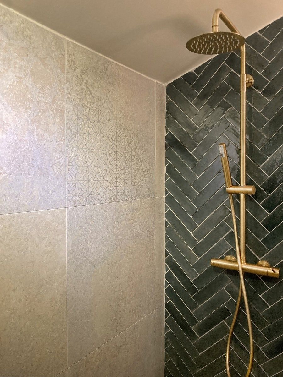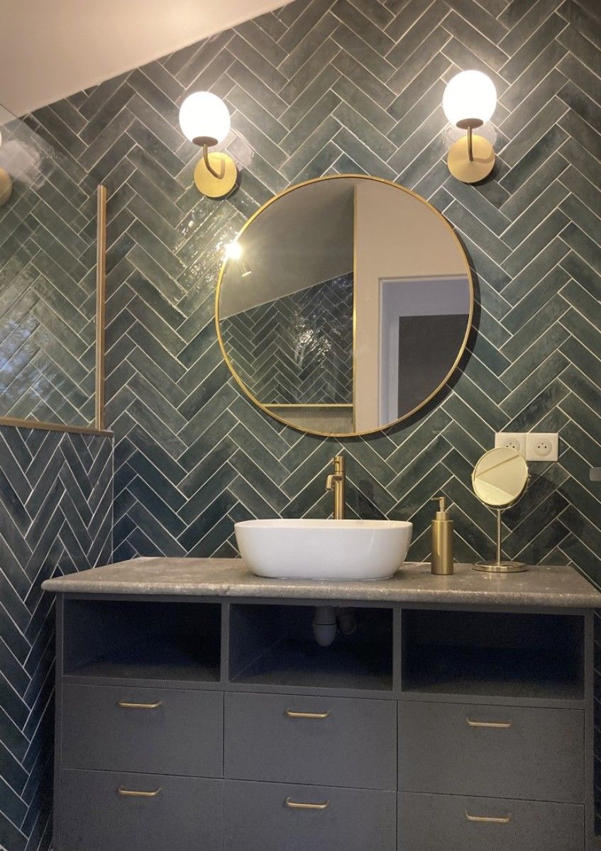 Mission : Pour requalifier entièrement la salle de bains de cette maison d’habitation, nous avons démoli les cloisonnements existants en gagnant sur le cellier et le dégagement pour créer un espace de bains plus spacieux et intégrer une baignoire.