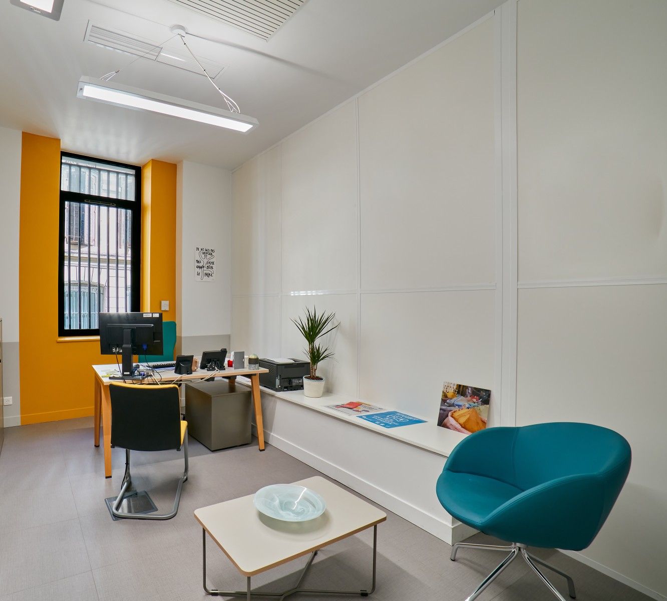 CHU Assistance publique Marseille. Aménagement de bureaux pour un lieu d’accueil et de soin, spécialisé en addictologie pour les jeunes.